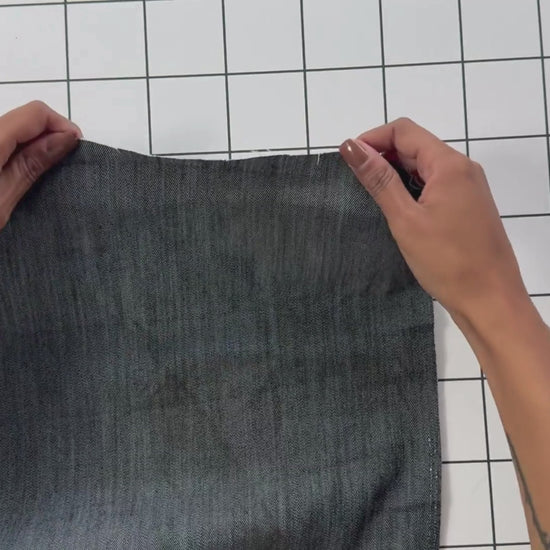 Lightweight gray denim with a soft twill weave and added stretch for comfort and ease of movement. The lighter weight makes it ideal for garments that need structure without heaviness, while the stretch adds versatility and wearability. This fabric is great for creating modern everyday pieces with a clean, neutral look.